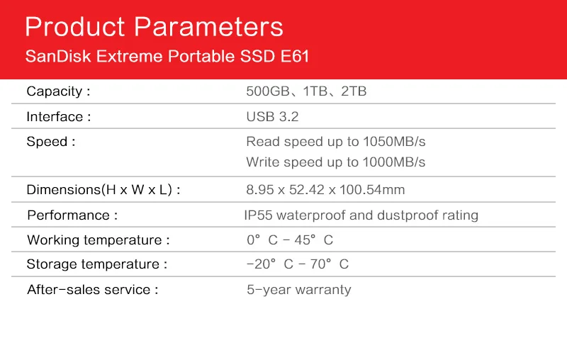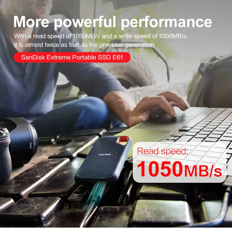 SanDisk E61 Portable Solid State Drive Nvme High Speed up to 1050mb/s Reading IP65 SSD 4TB 2TB 1TB 500GB USB3.2 TYPC-C PSSD