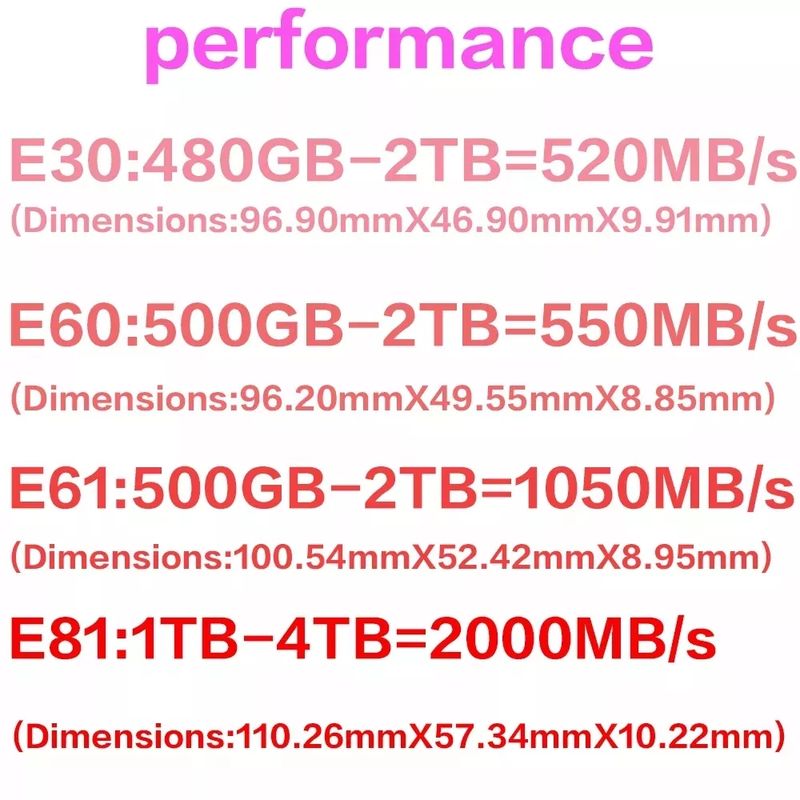 Dear friends in the purchase, please note: Sandisk mobile hard disk model E30 is missing 500GB, E60 is missing 480GB, E61 is missing 480GB, E81 is missing 480GB. At the time of purchase, if you are not clear, please contact our staff. Our store only sells original products. Please feel free to buy