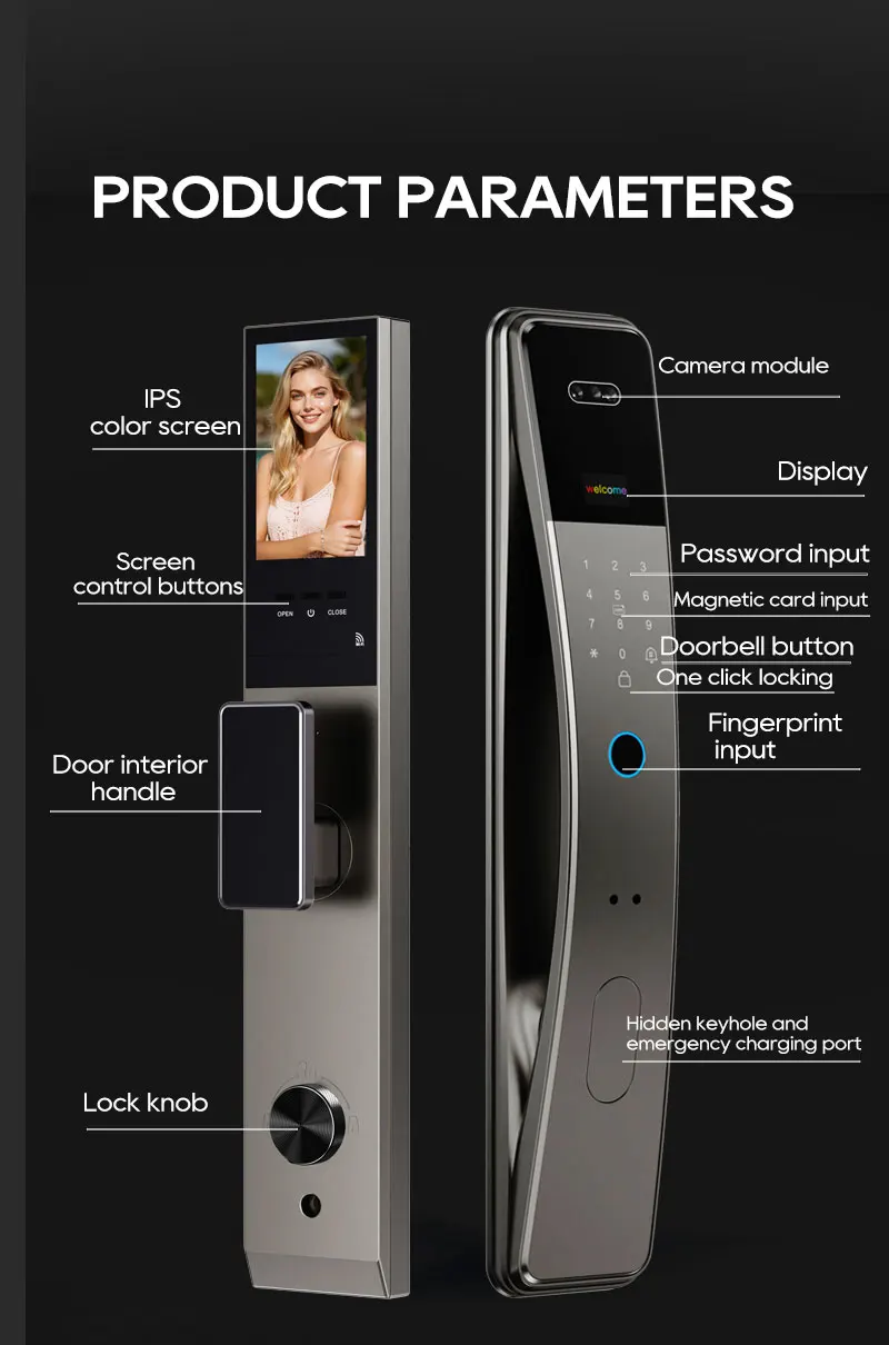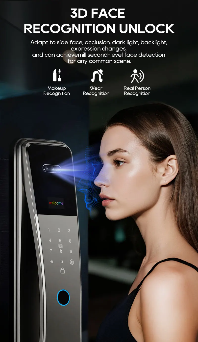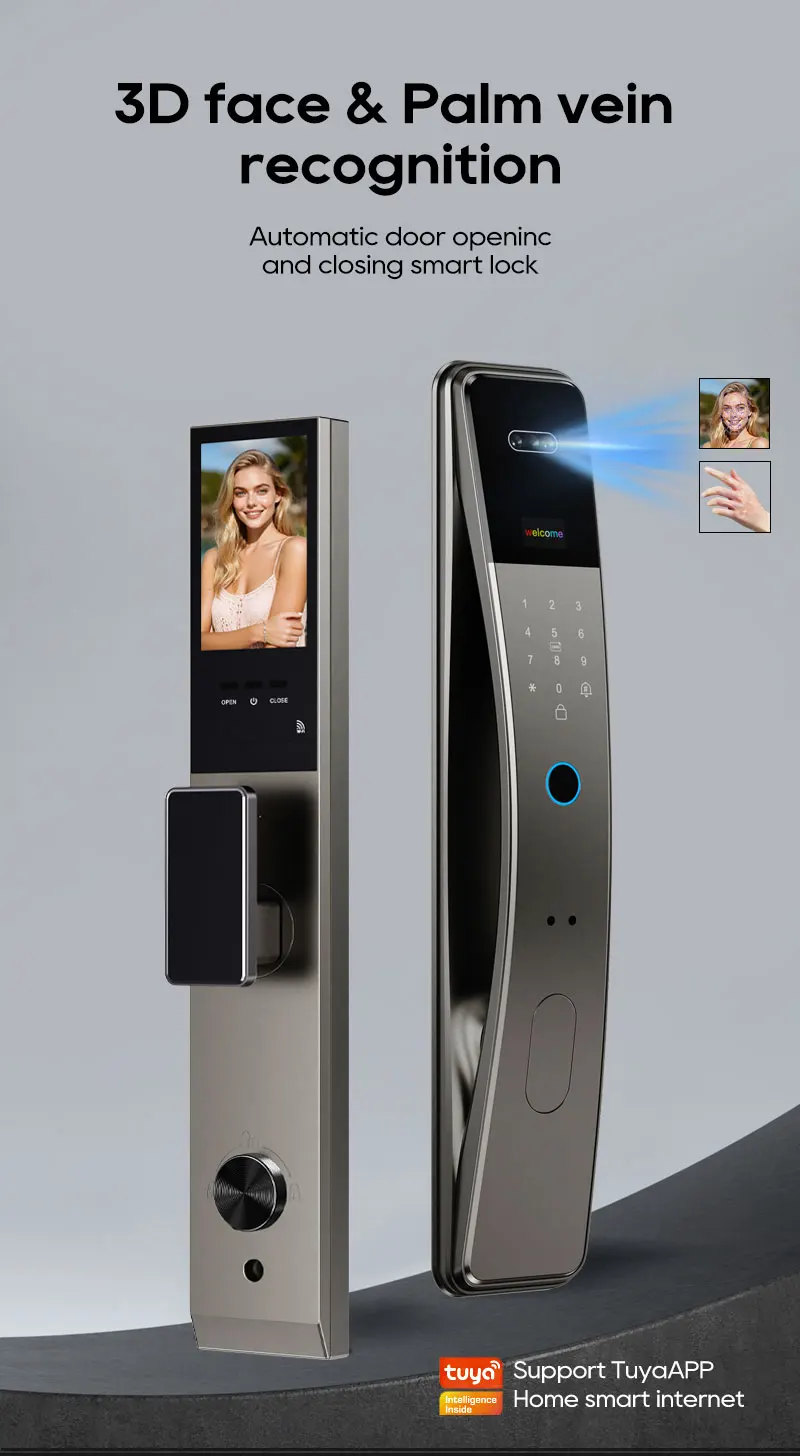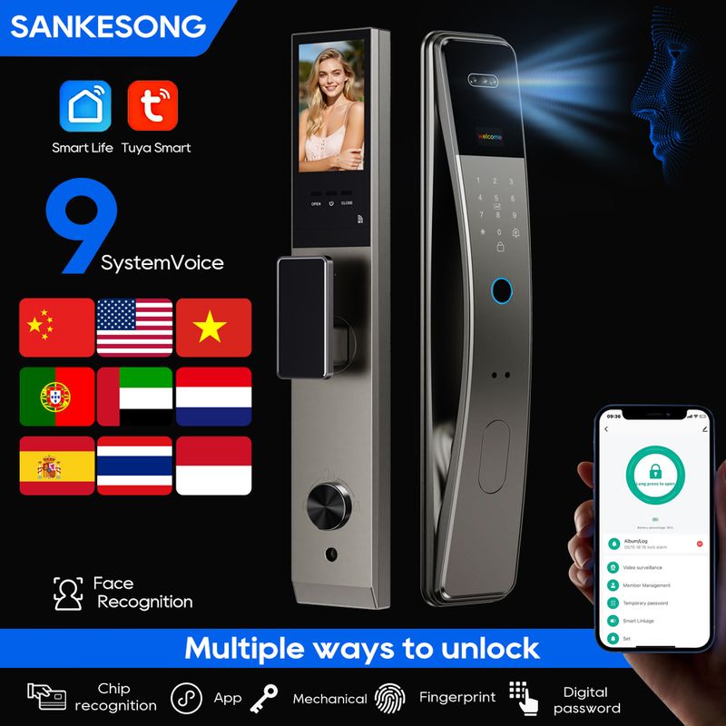 SANKESONG Tuya Smart 3D Face Door Lock Security Camera Monitor Intelligent Fingerprint Password Biometric Dual Battery