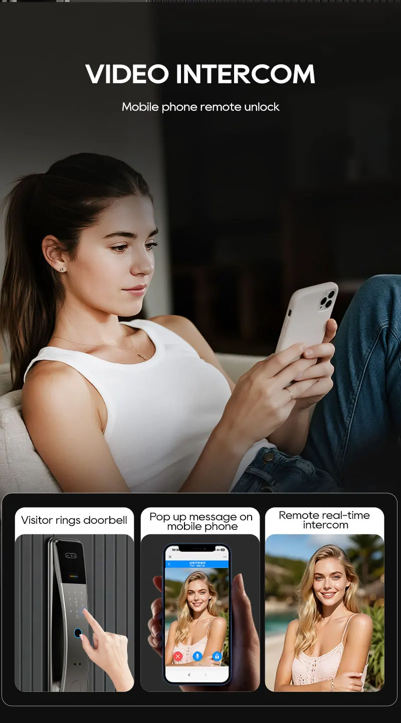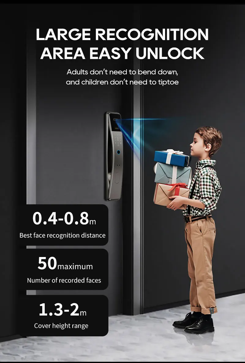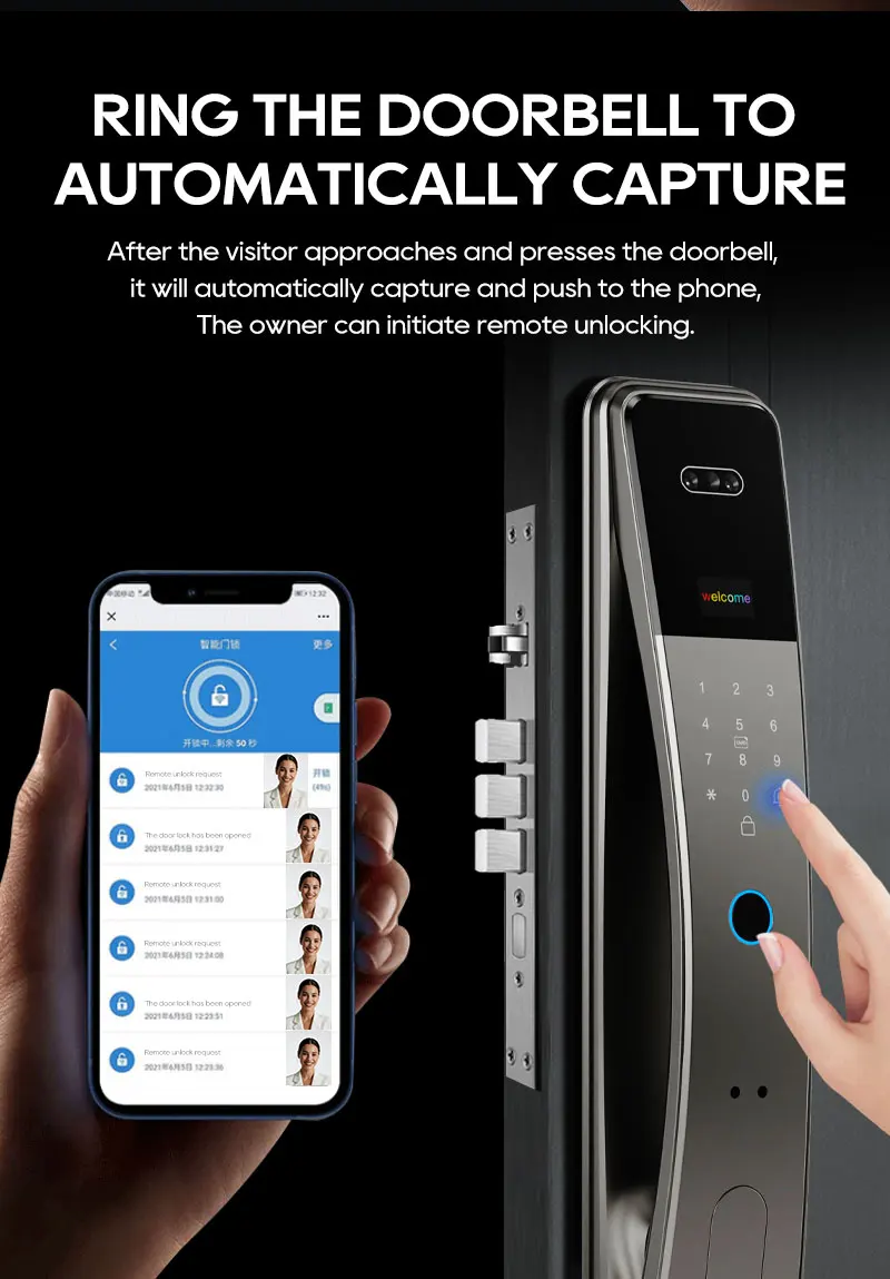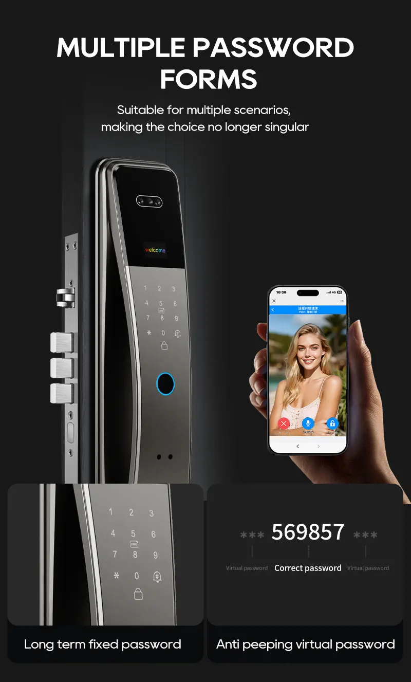 SANKESONG Tuya Smart 3D Face Door Lock Security Camera Monitor Intelligent Fingerprint Password Biometric Dual Battery