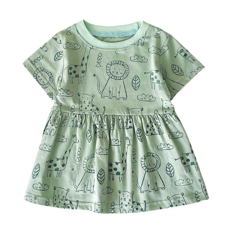 Sanlutoz Short Sleeve Summer Baby Dress Cute Pattern Casual Kids Girls Clothing Dress Cotton