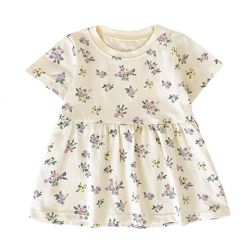 Sanlutoz Short Sleeve Summer Baby Dress Cute Pattern Casual Kids Girls Clothing Dress Cotton
