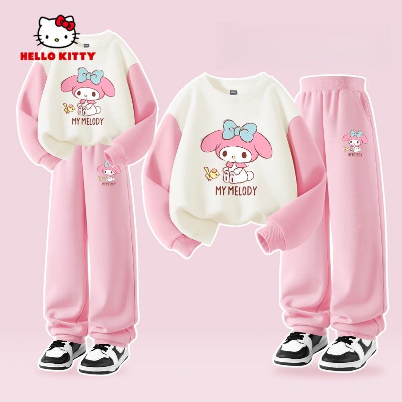 Sanrio Autumn Baby Girls Clothes Set Kid My Melody Printed Sweatshirts Pullover Top & Pants 2pcs Children Patchwork Tracksuit