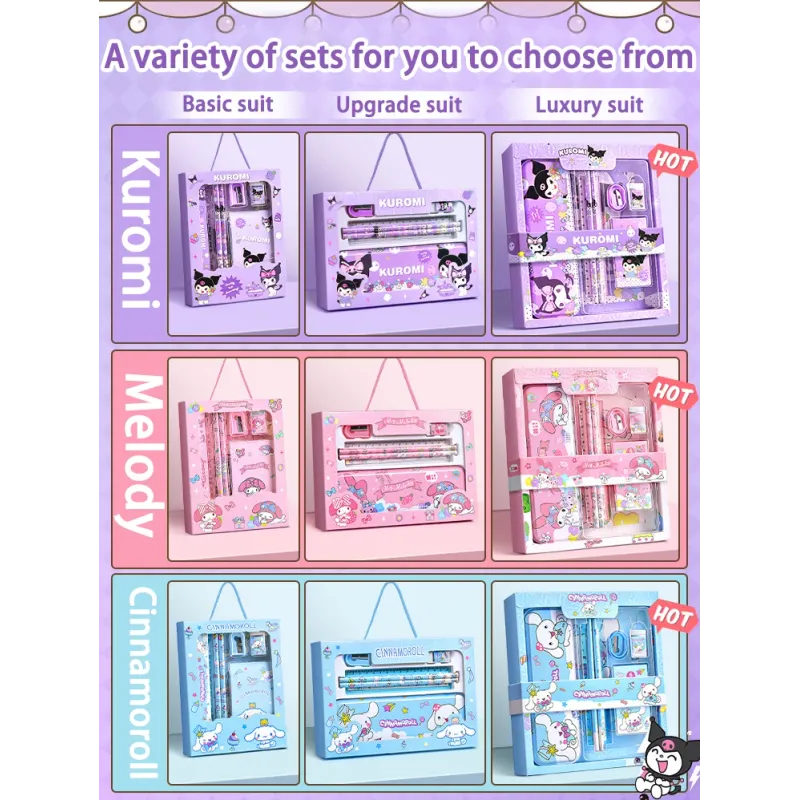 Sanrio Cartoon Kuromi Learning Stationery Set Gift Box Pencil Eraser Set Stationery Gift Pack Childrens Gift Happy Learning