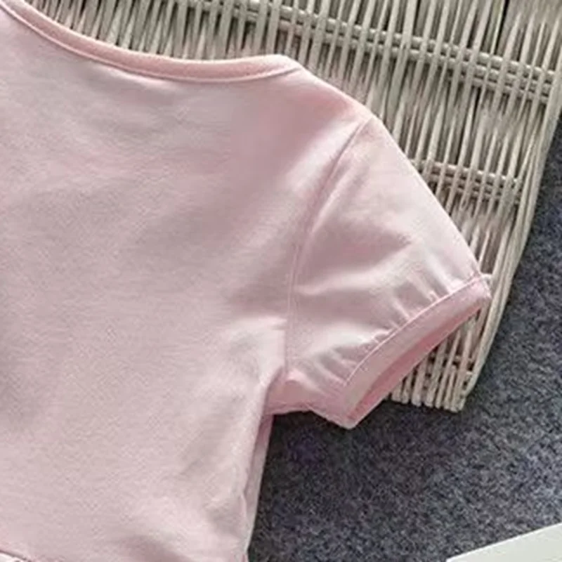 Sanrio Summer Baby Girls Solid Cotton Dress Kid Children Hello Kitty Printed Short Sleeve Clothes Cartoon Cute Princess Dresses