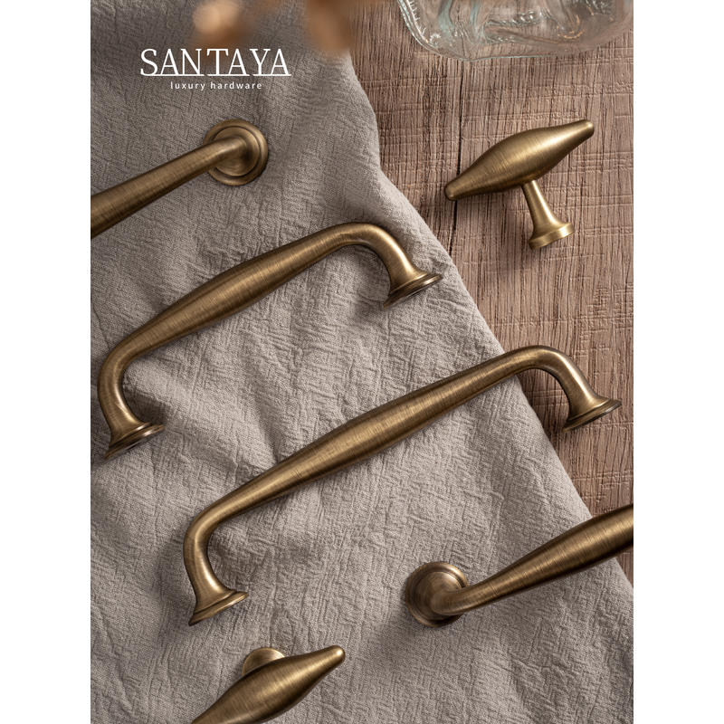 Santaya Antique Brass Furniture Handles and Knobs Bronze Wardrobe Pulls Cupboard Door Knob Retro Brass Kitchen Cabinets Handles