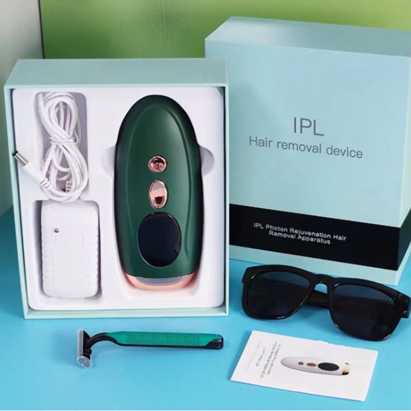 Hair removal device * 1 adapter * 1 goggles * 1 hair scraper * 1 manual * 1 color box packaging * 1