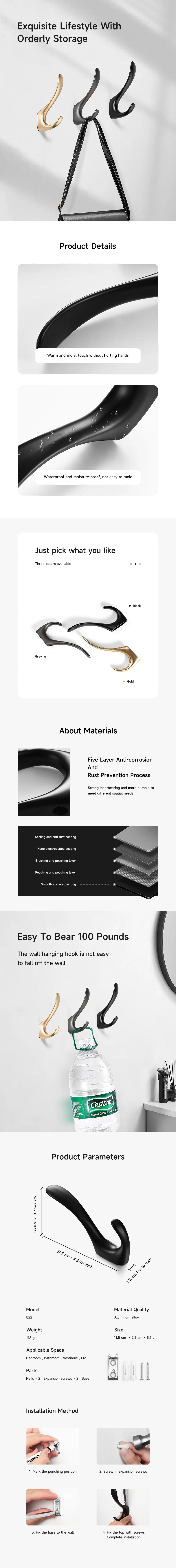 SARIHOSY Wall Hook Black Clothes Hooks Wall Storage Towel Hook Coat Rack for Bathroom Kitchen Multifunctional Home Accessories