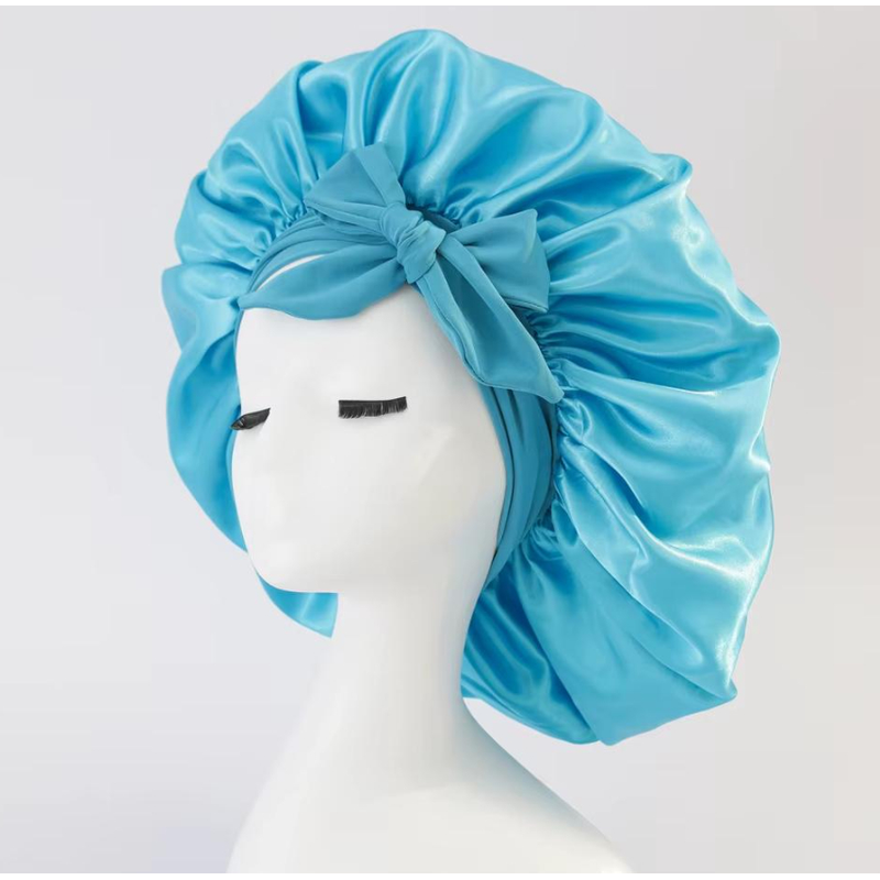 Satin Ribbon Round Bow Elastic Nightcap Single layer ribbon deep blue Free Size