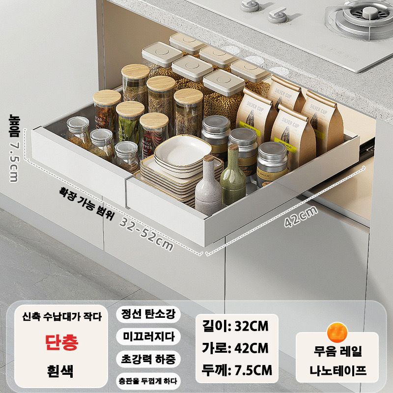Scalable Pull-out Kitchen Storage Rack with Slide Rails Drawer Type Storage Tray Spice Box Storage Rack Cabinets Organizer