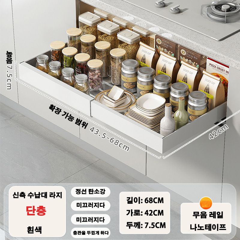 Scalable Pull-Out Storage Kitchen Rack With Slide Rails Drawer Type Organizing Tray Spice Boxes Storage Racks Cabinets Organizer