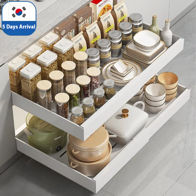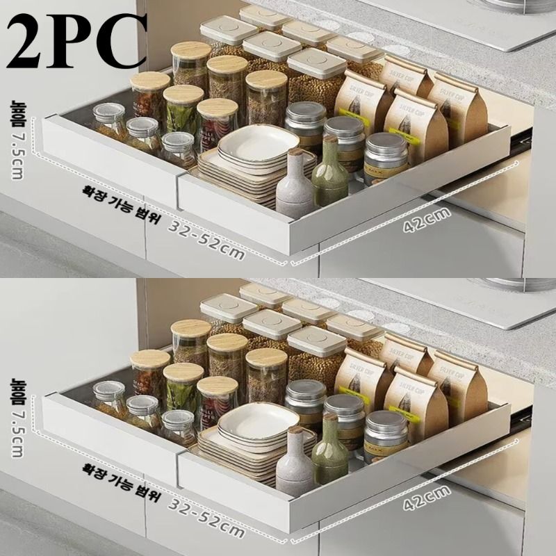 Scalable Pull-Out Storage Kitchen Rack With Slide Rails Drawer Type Organizing Tray Spice Boxes Storage Racks Cabinets Organizer