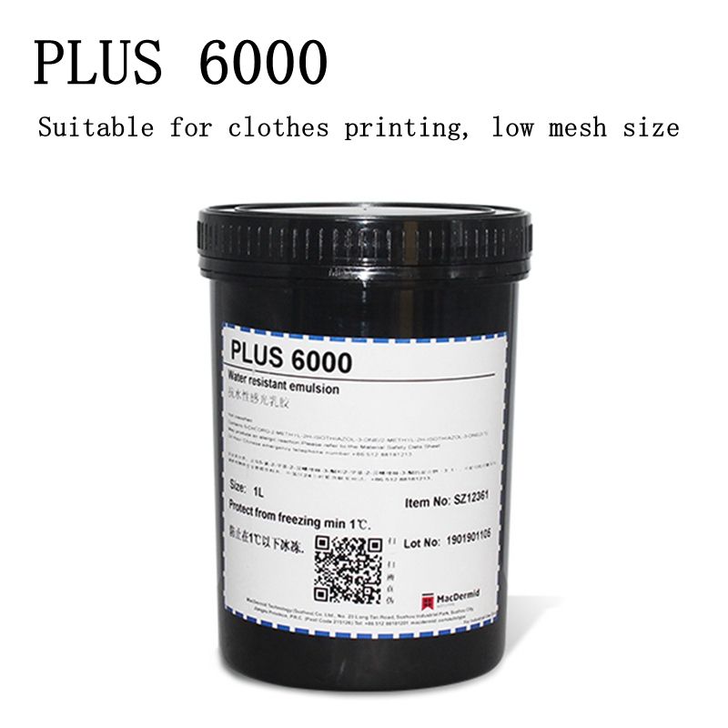 Plus 7000/8000 is a killer Textile Pure Photopolymer Emulsion. It is pre-sensitized and ready for use. Apply to clean, degreased, dried screen with a scoop coater. Be sure to use appropriate application techniques.