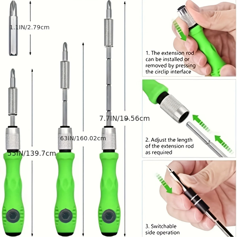 Extension piece included - thanks to a sturdy, extendable and long extension piece made of chrome vanadium steel, you can reach every corner of the device repaired with our kit. Many electronic devices are so cleverly designed that access to screws is restricted, preventing unauthorized persons from disassembling them. High quality extension overall allows you to reach even the heaviest screws.
