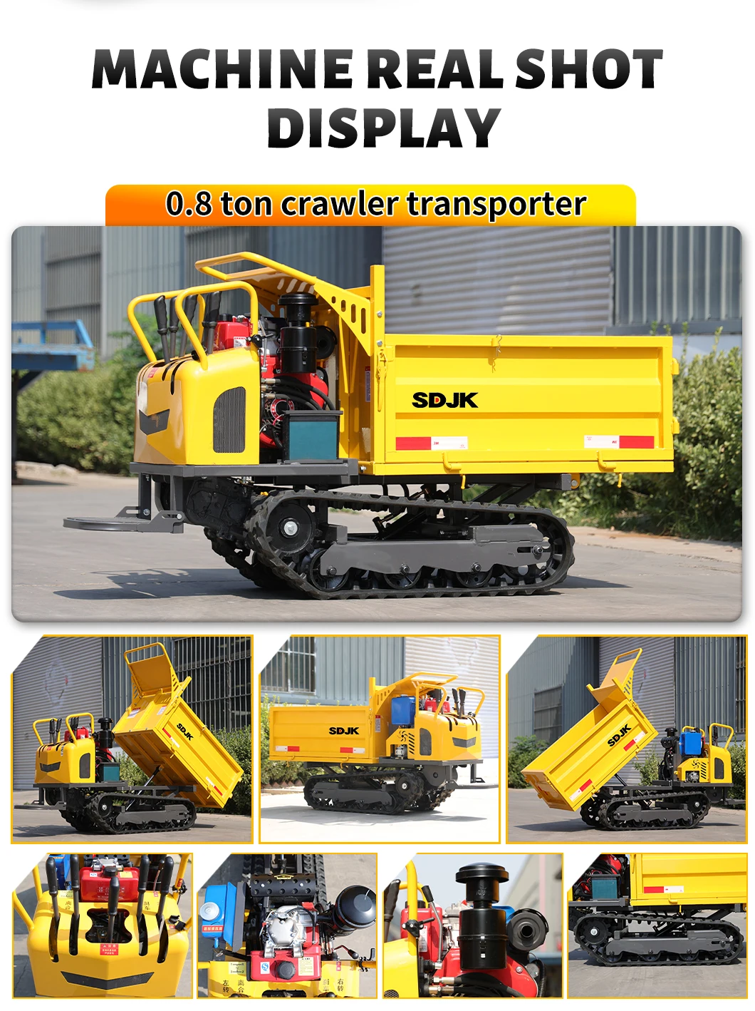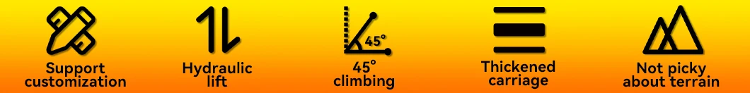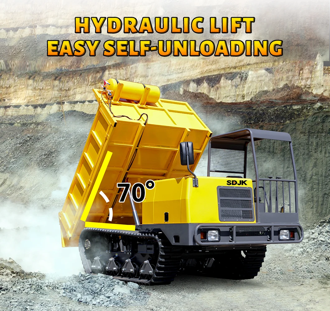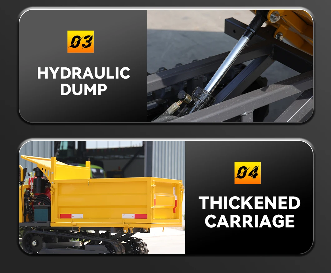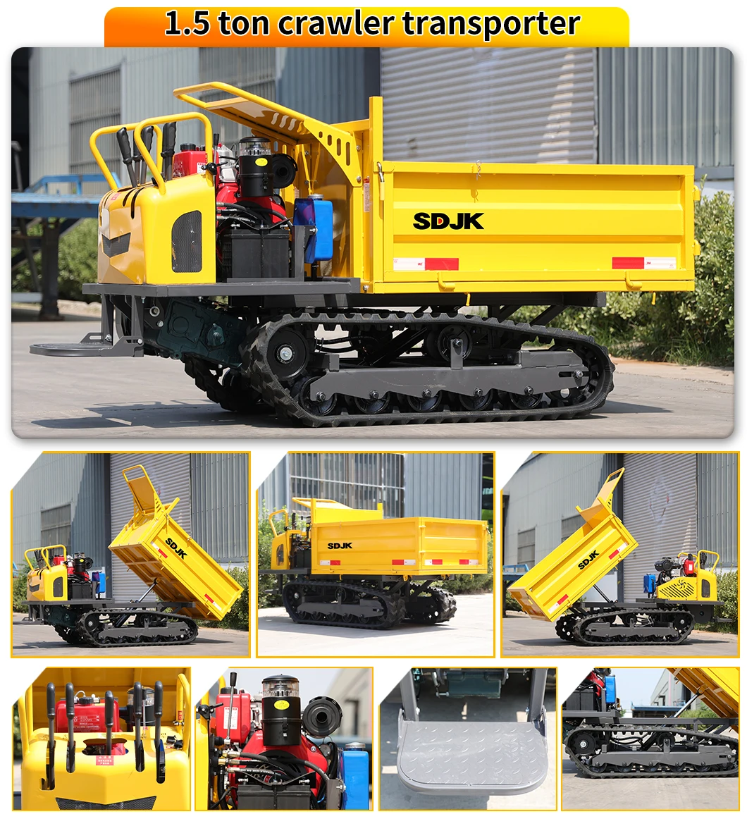 It is suitable for easily transporting large items, crops, sand, and other objects that are difficult to transport manually in a narrow space. This machine is simple to operate, controlled, and standardized design makes the operation not only fast and cost-saving, but also has excellent climbing ability, especially for hard work. It is characterized by rubber crawlers and firm swing rollers to ensure that the operator operates smoothly during transportation, Effortless, and minimize the damage to the ground.
