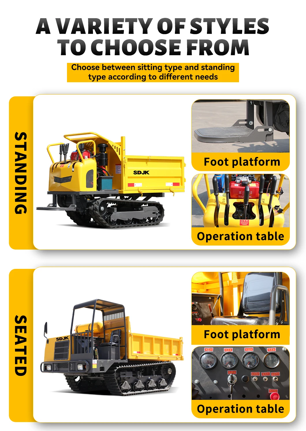 1.We are a Chinese manufacturer with various models of crawler dumpers, you can choose our dumpers according to your needs, we have agents and after-sales service in the global market.