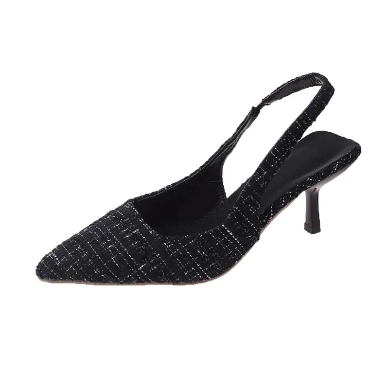 Sea Salt Blue Pointed High Heel Sandals for Women Back Hollow Half Headed Single Shoes Fashion Versatile Casual Shoes