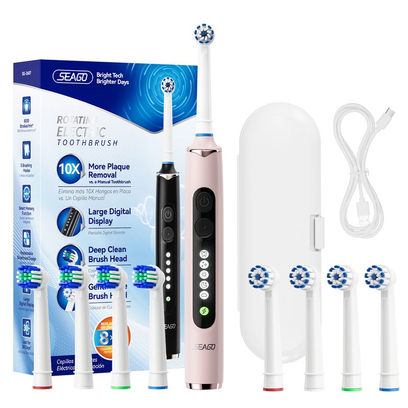 Seago Rotating Electric Toothbrush for Adults with 8 Toothbrush Heads and Travel Box Smart Display 5 Modes Waterproof SG-2607