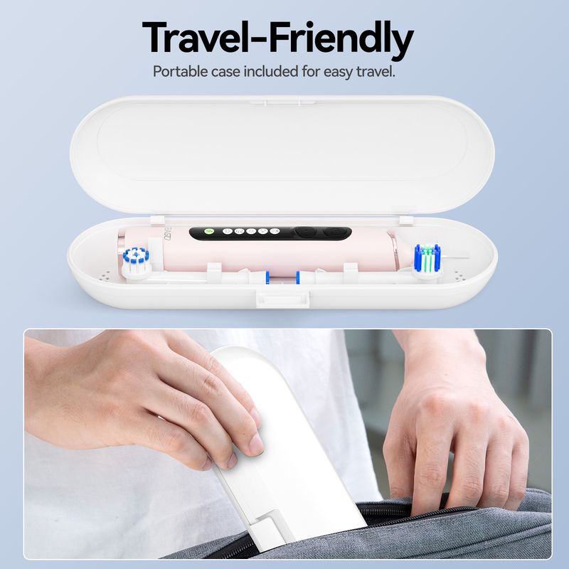 Never leave your oral care behind when traveling. The compact and stylish travel case makes it easy to carry your toothbrush and accessories during business trips or vacations.8 Premium Brush Heads Included