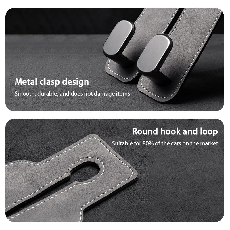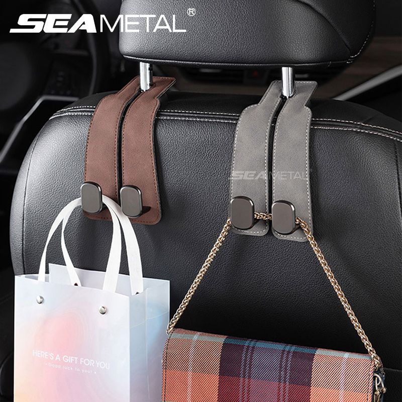 SEAMETAL Car Headrest Dual Hooks Hanger Luxury Suede Seat Back Organizer Holder Clips 20kg Load-Bearing Hooks Car Accessories
