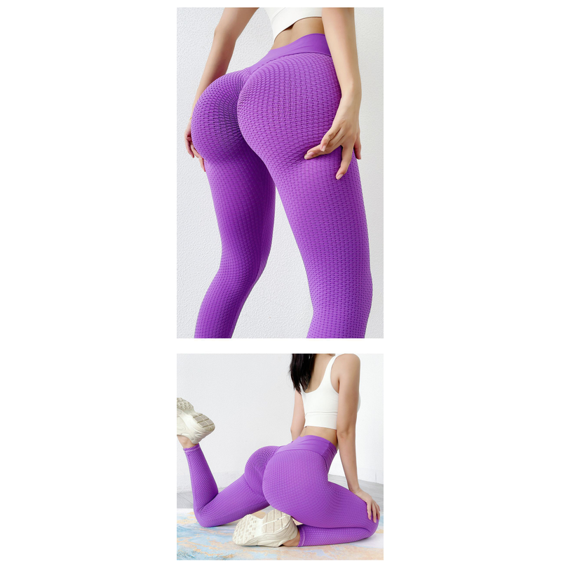 Seamless Solid Color Honeycomb Fitness Yoga Pants Blue M