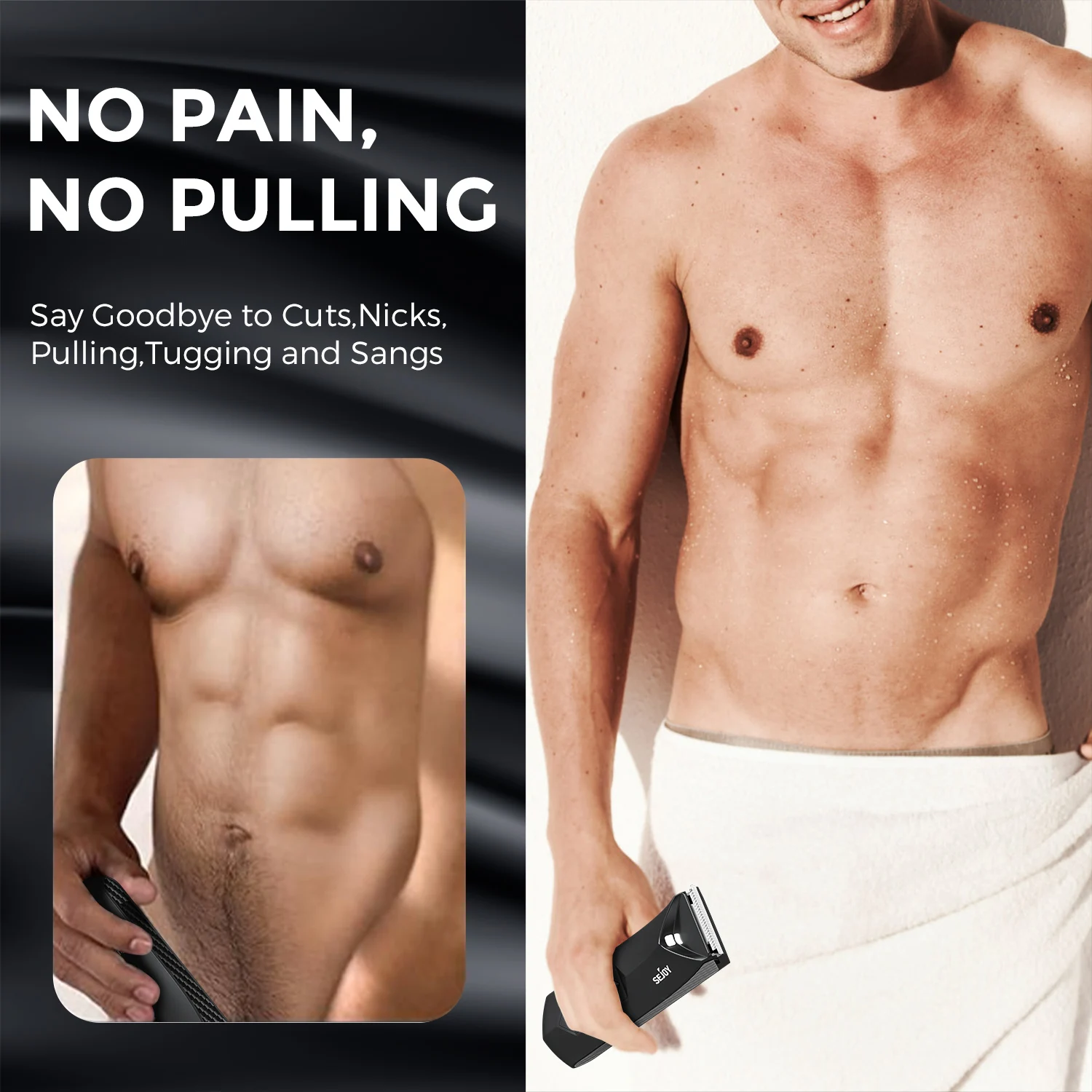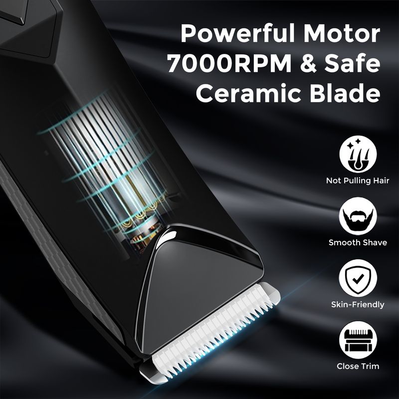 Body, Pubic& Back - hair trimmers were designed for below-the-waist grooming but work great on your not so private parts too! Our Trimmer’s Black ceramic blades trim hair never cutting, tugging, or irritating the skin. You can use it with confidence to keep your manhood looking trim, neat, and clean. Get the job done quick & exact results you're looking for.