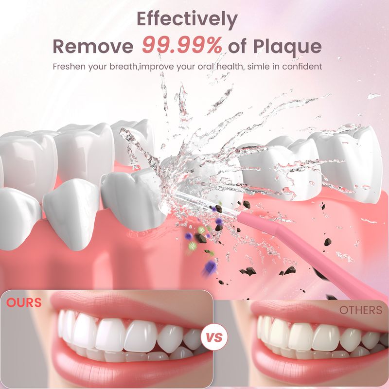 【 Super Long Battery Life &T IPX7 Waterproof】Water dental piks With powerful and environmental battery, fully charged need 4 hours and used continuously for about 30 days. With dual-sealing protection, Our water flosser cordless is leakproof and IPX7 waterproof,ensuring safe use for bathroom or shower. Come with USB cable,compatible with various charging devices. Perfect for travel and home use!