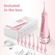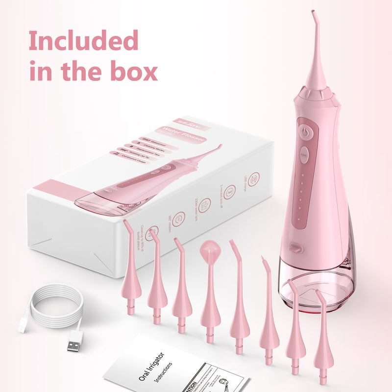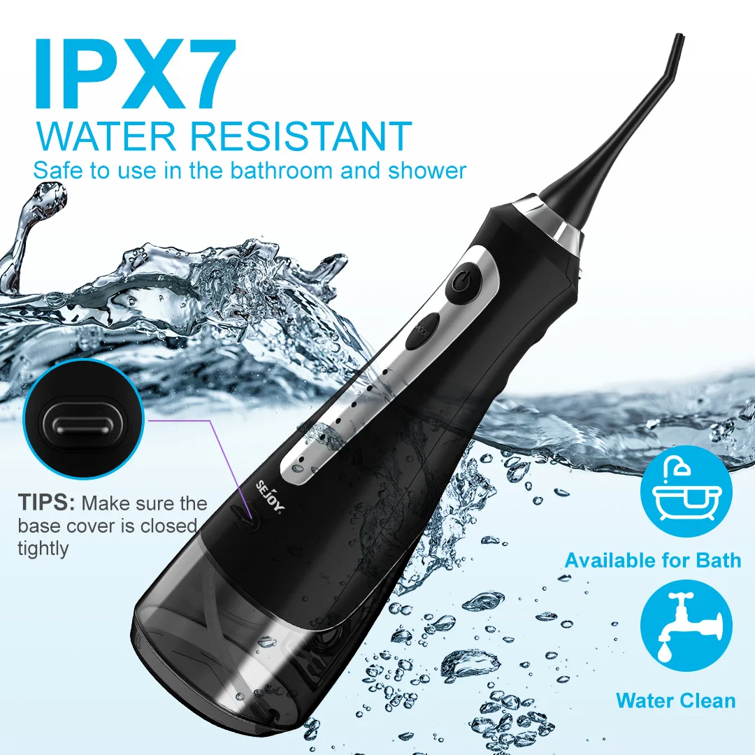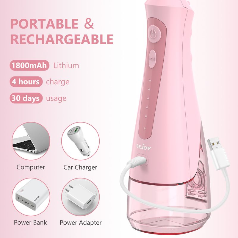 【 Super Long Battery Life &T IPX7 Waterproof】Water dental piks With powerful and environmental battery, fully charged need 4 hours and used continuously for about 30 days. With dual-sealing protection, Our water flosser cordless is leakproof and IPX7 waterproof,ensuring safe use for bathroom or shower. Come with USB cable,compatible with various charging devices. Perfect for travel and home use!
