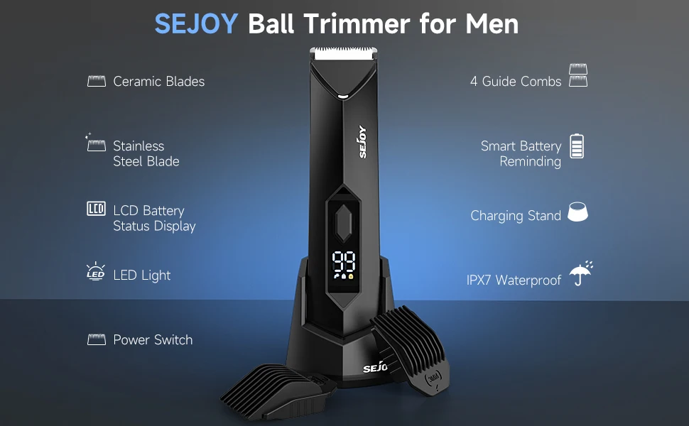 【WATERPROOF & LED LIGHT】The trimmer is IPX7 waterproof grade. It can be used for either wet such as shower or dry circumstances. The LED light helps the trimmer to be used in dark condition.