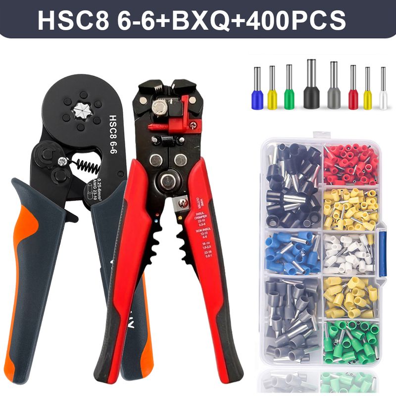 Self-Adjusting Wire Strippers and Crimper Tool,Hexagonal Self-Adjustable Ratchet Ferrule Crimping Tool Kit with Wire Terminals