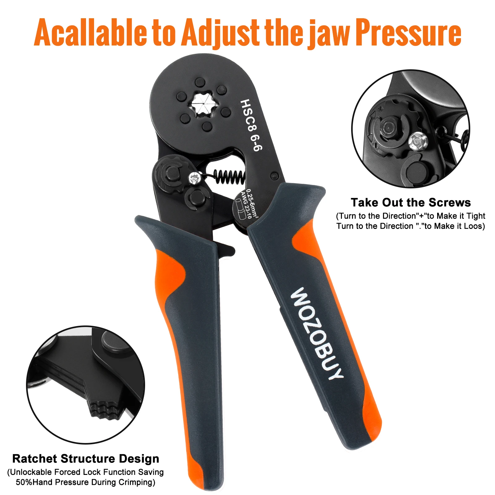 Self-Adjusting Wire Strippers and Crimper Tool,Hexagonal Self-Adjustable Ratchet Ferrule Crimping Tool Kit with Wire Terminals