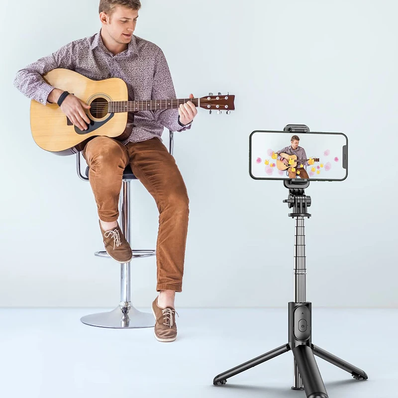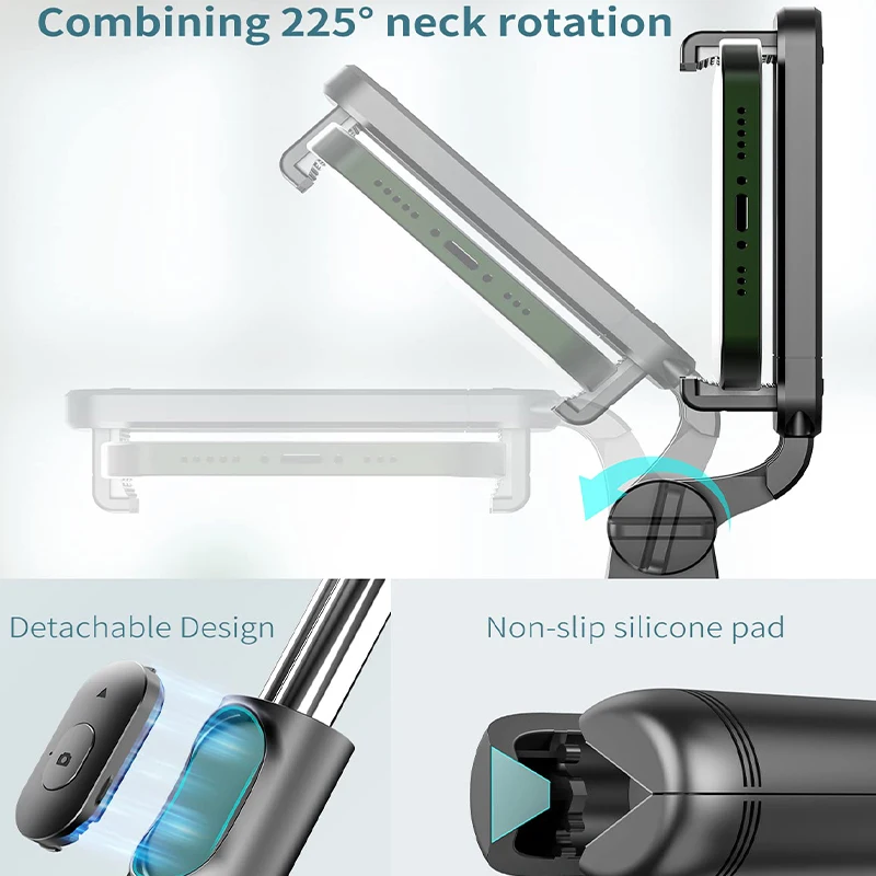 This is a beautiful kit that not only serves as a selfie stick, but can also be easily converted into a phone stand. At the bottom, you can release three legs to obtain a desktop tripod. Under normal conditions on a flat surface, the shorter the extension time, the more stable it becomes. A beautiful stable and balanced tripod, convenient for hands-free selfies and face-to-face/video calls.