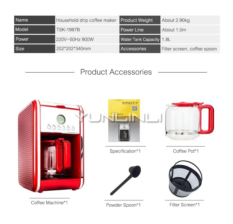 Semi-automatic Drip Coffee Maker Household Americano Coffee Machine 1.8L Intelligent Drip Coffee Machine