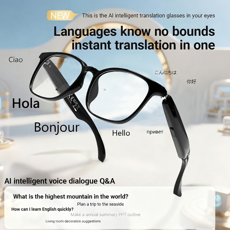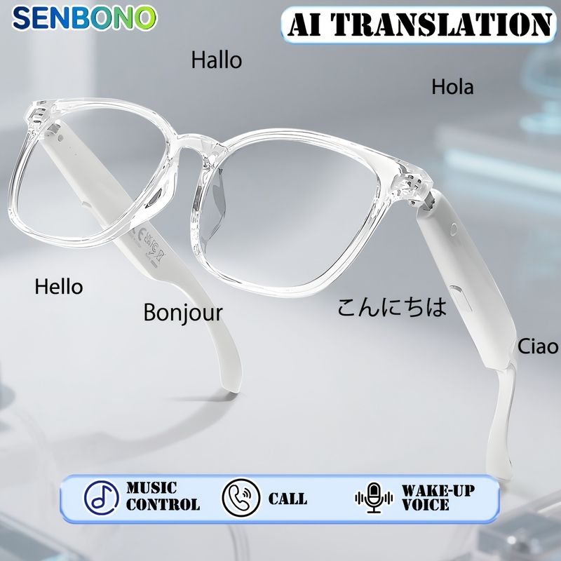 SENBONO AI Translation Smart Glasses Answer/Reject Call Music Control Wake-up Voice Blue Light Blocking Glasses for Men Women