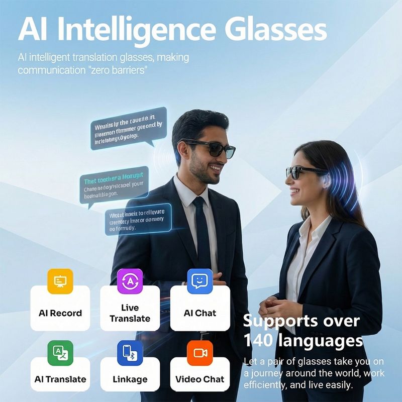 SENBONO AI Translator Audio Smart Glasses for Women BT Call Music Play Camera Control Sunglasses Fashion Smart Glasses for Men