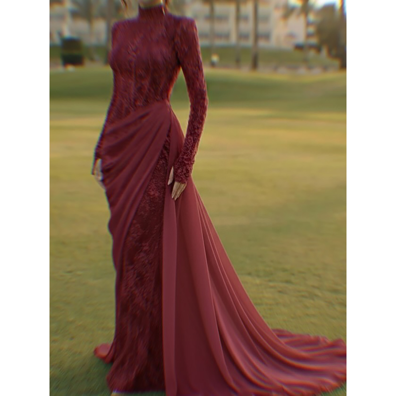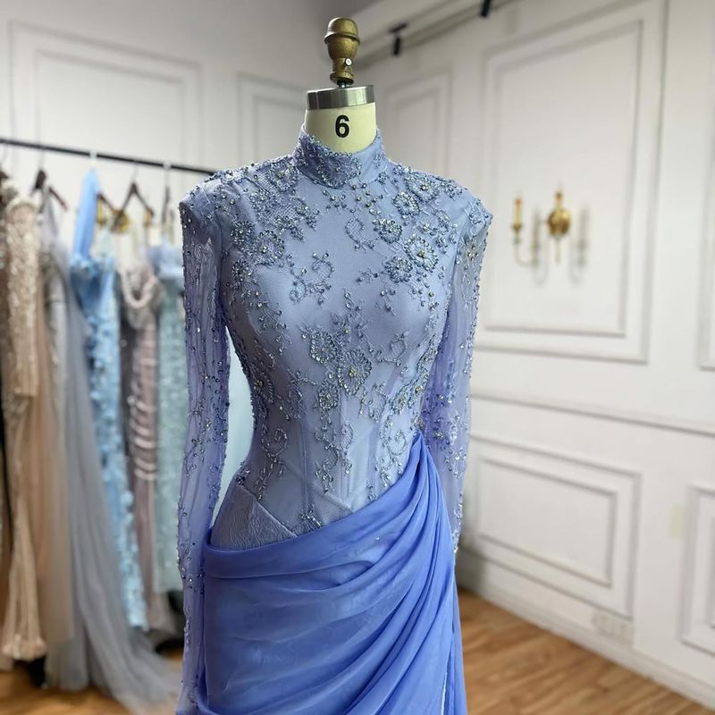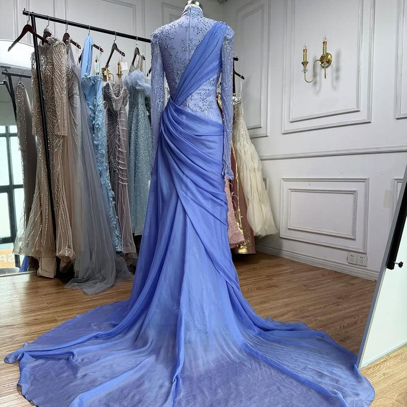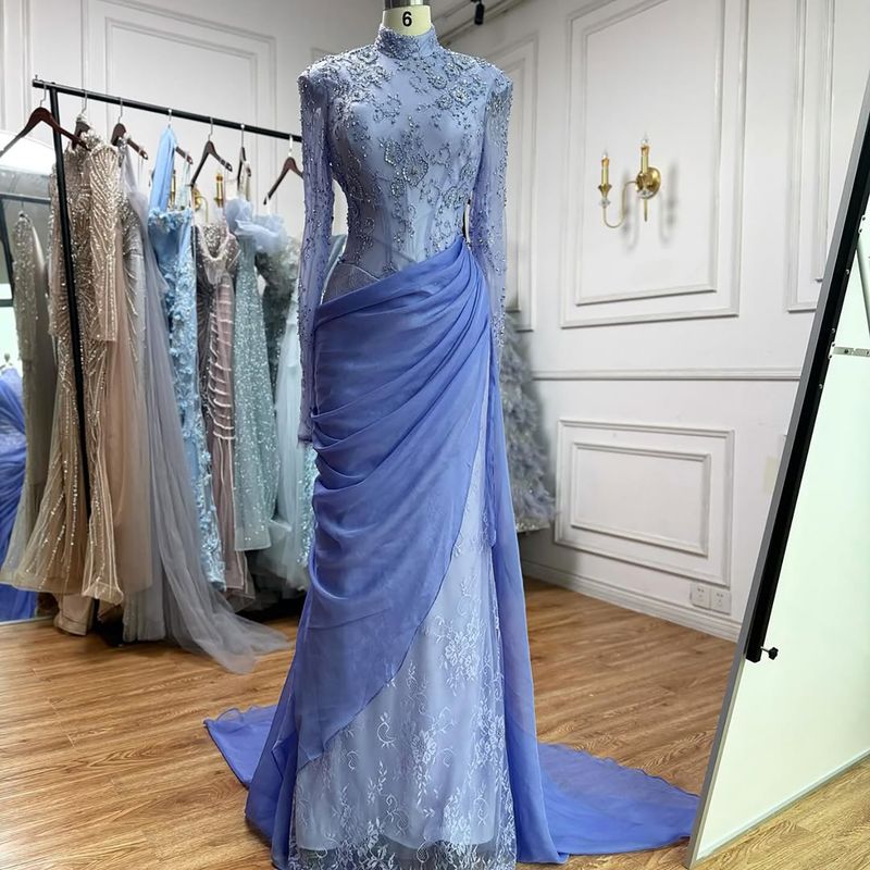 SERENE HILL Customized Lilac Lace Chiffon Mermaid Evening Dress 2026 Modest Hijab Muslim Women Wedding Party Gown CLA73407