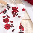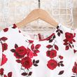 Set For Kids Girl 8-12 Years Ruffled Sleeve Rose Floral Print Tulle Cute Princess Formal Dresses with Belt Ootd For Baby Girls