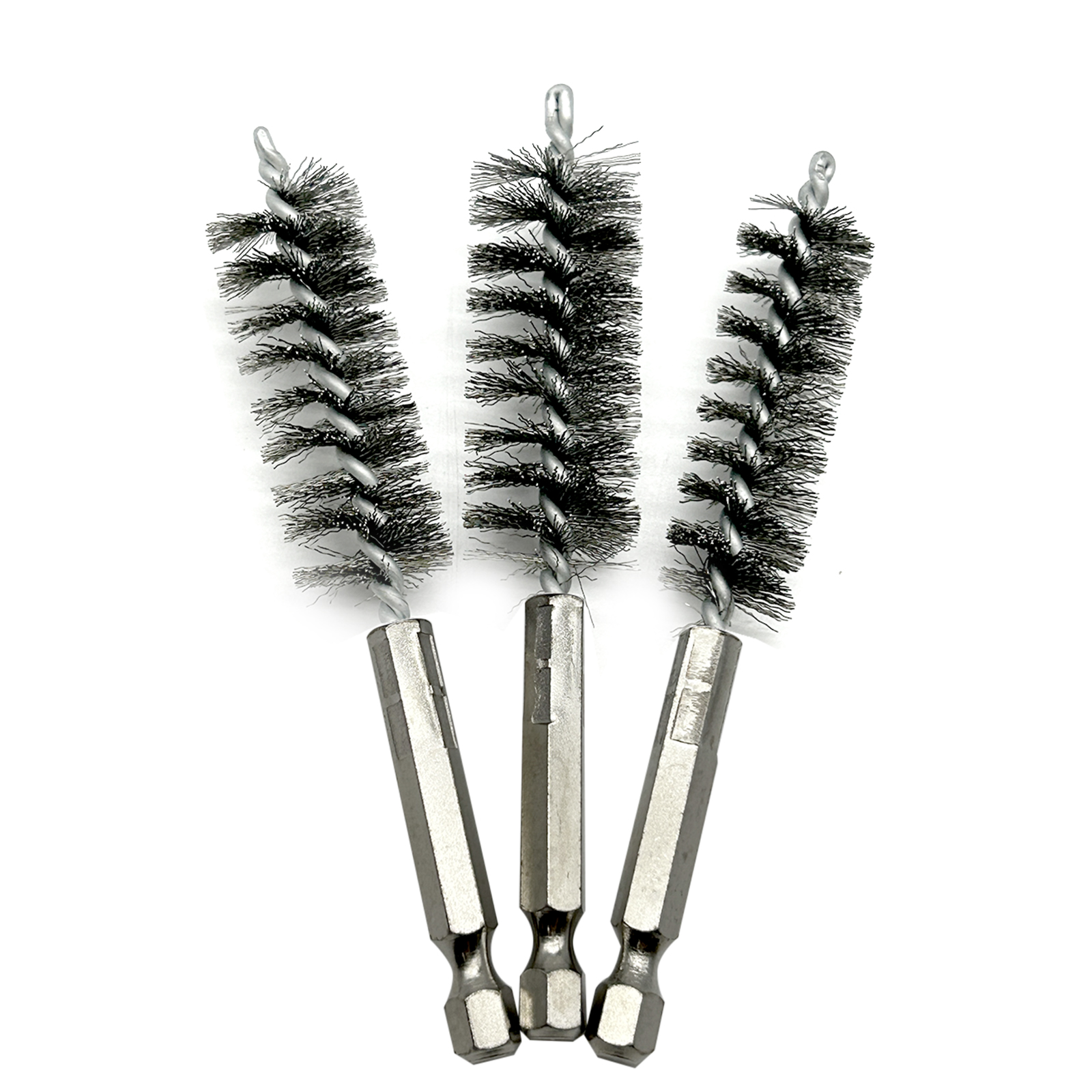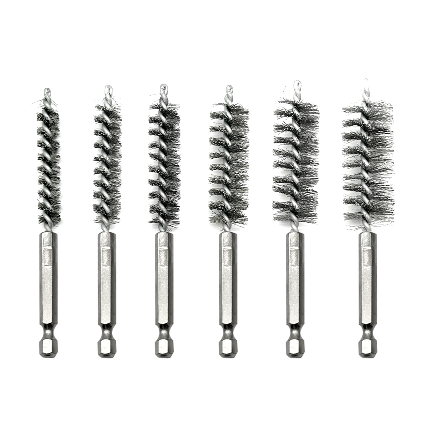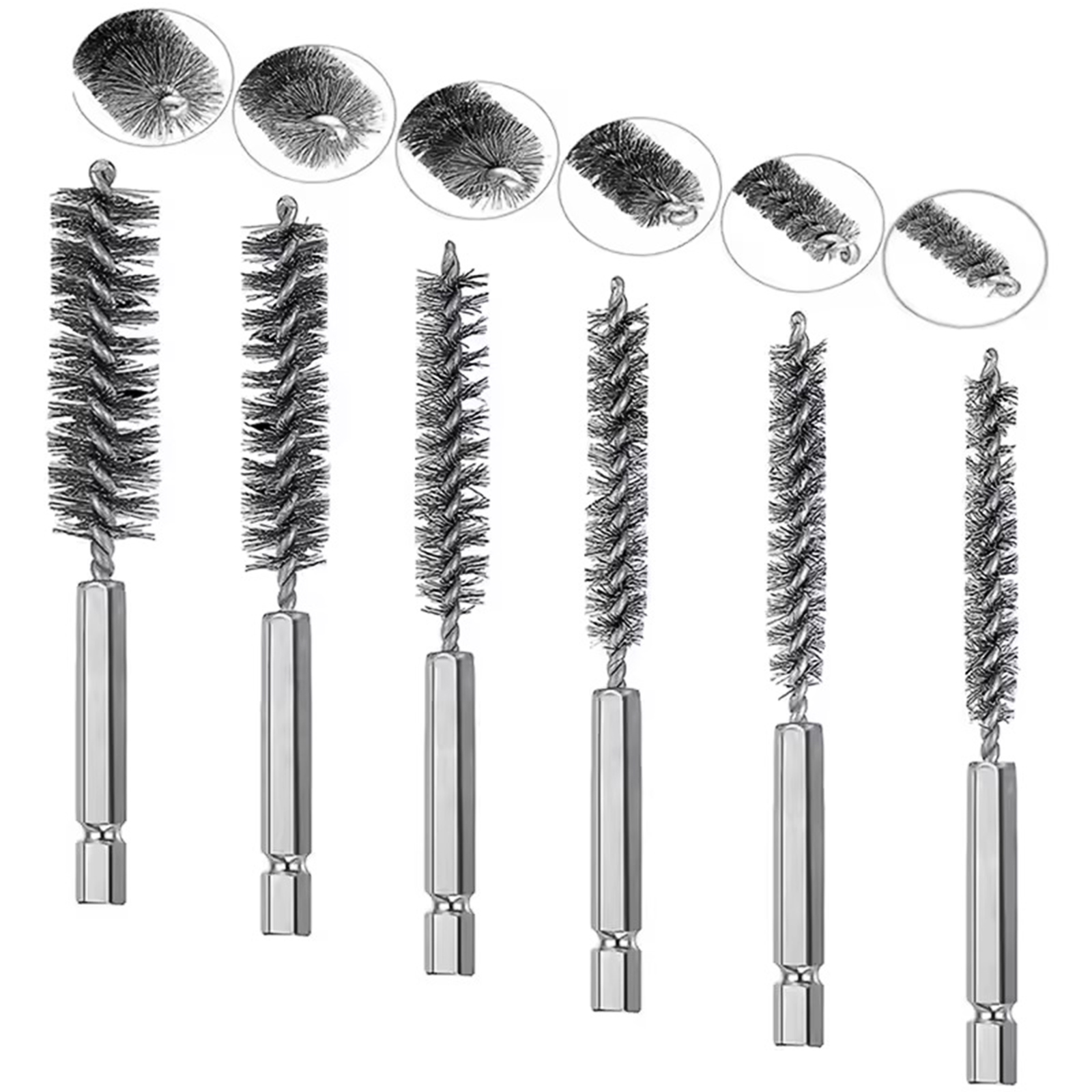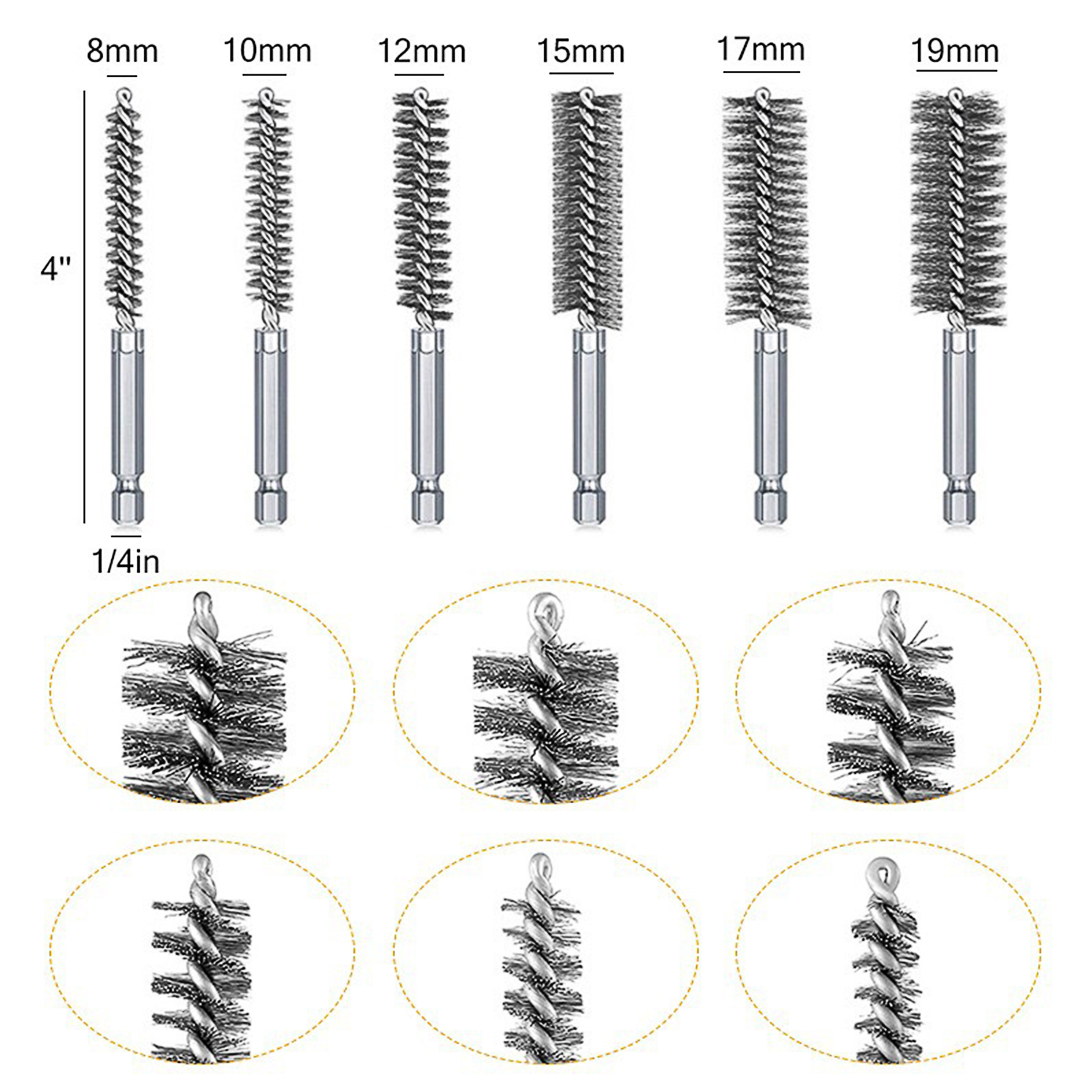 【Multiple specifications】: There are 6 different sizes of braided stainless steel wire hole brushes, including diameter of 8 mm, 10 mm, 12 mm, 15 mm, 17 mm and 19 mm; each brush has a length of 4 inches and a 1/4 inch hex shank for attaching to any drill or grinder (not included).