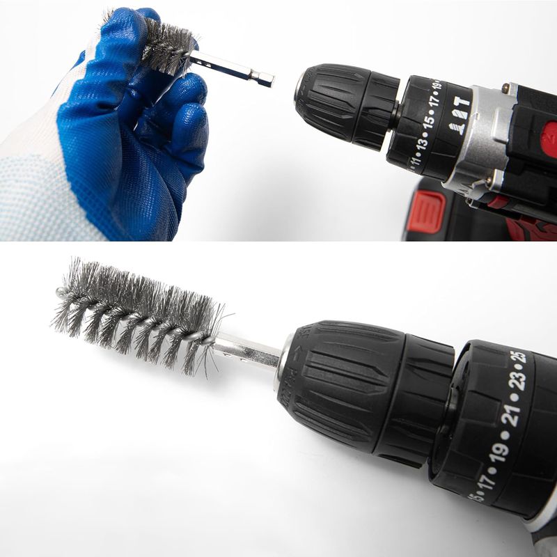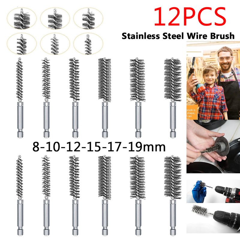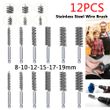 12Pcs Stainless Steel Wire Brush Drill Attachment Bore Rust Pipe Cleaner Set Professional Kits