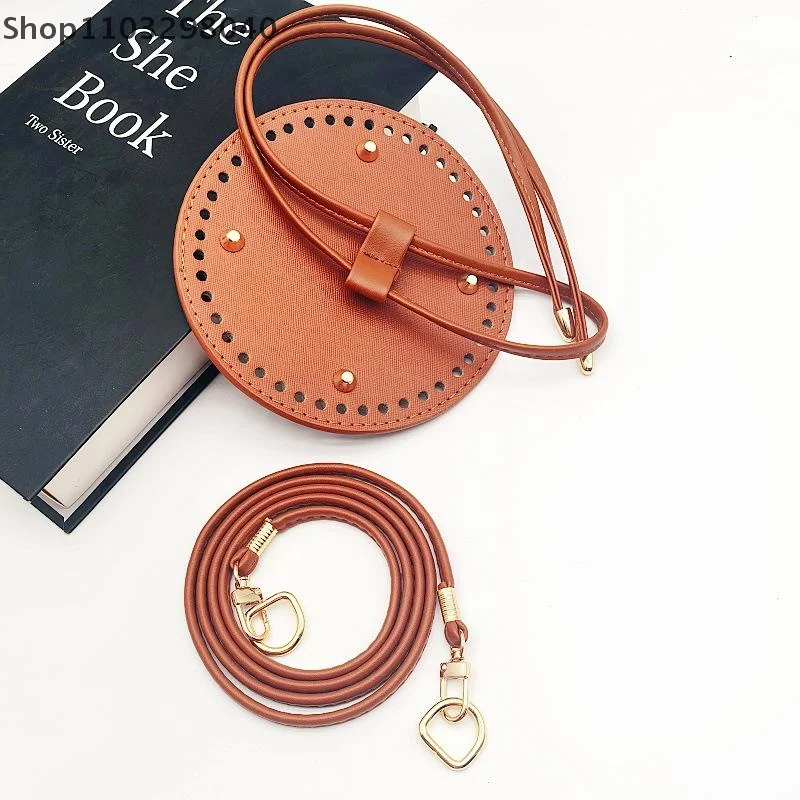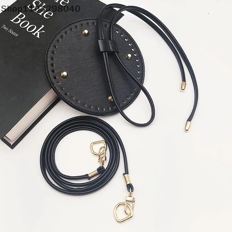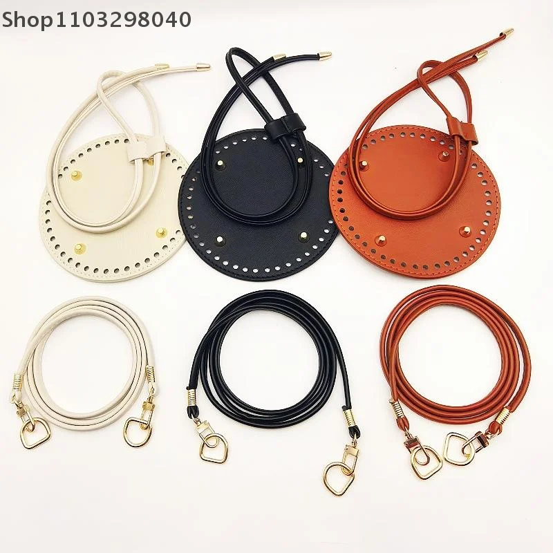 Set of 3 DIY Round PU Leather Crochet Woven Bags with Durable Solid Color Bottom Base – Handmade Drawstring Bag Accessories