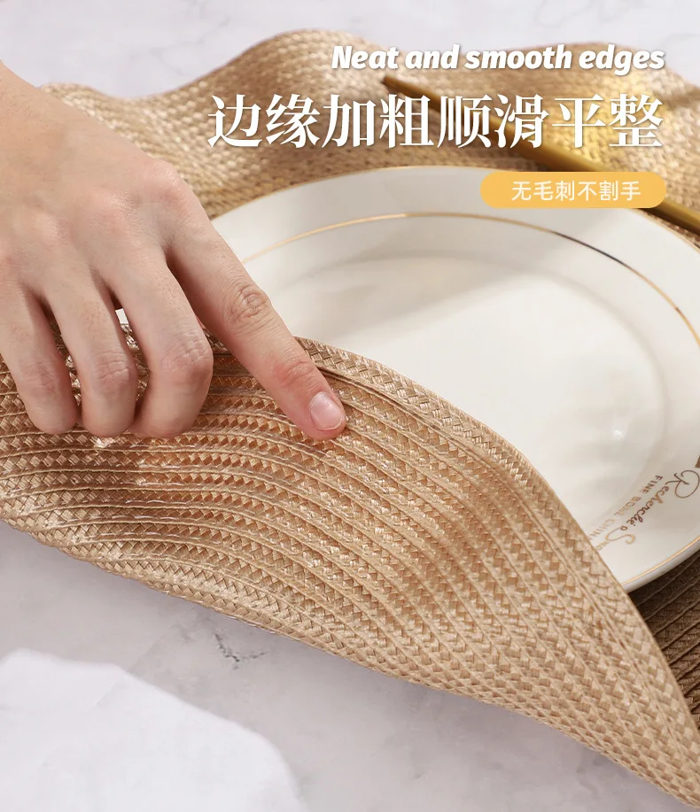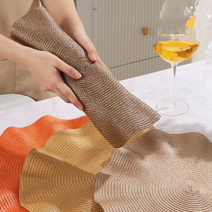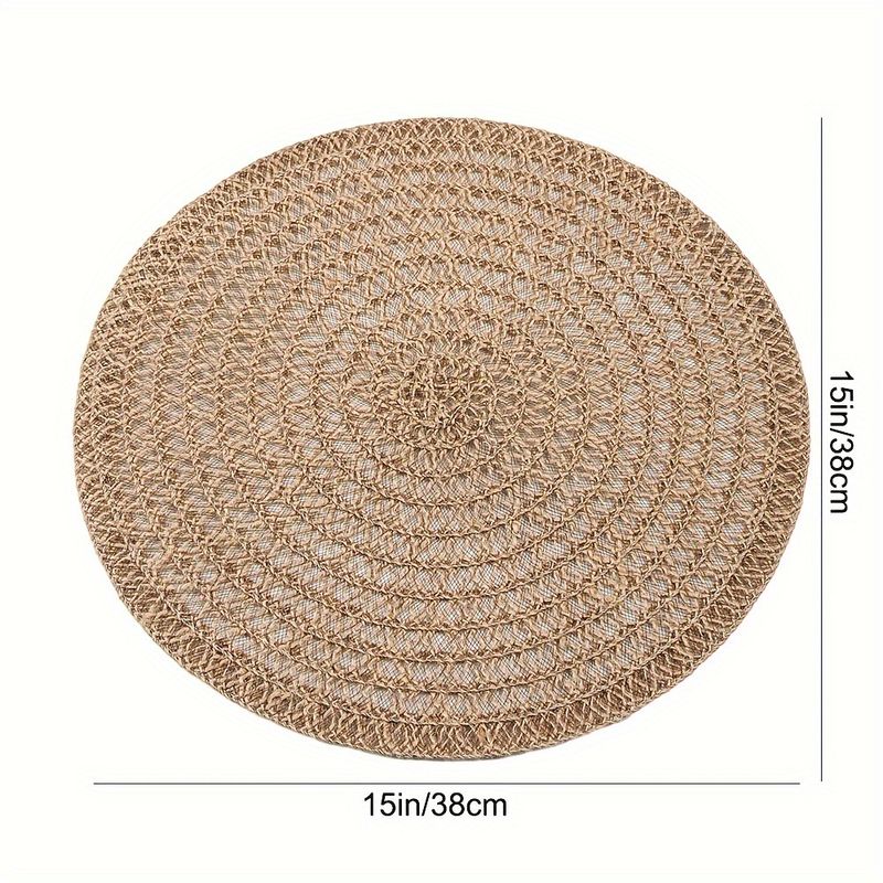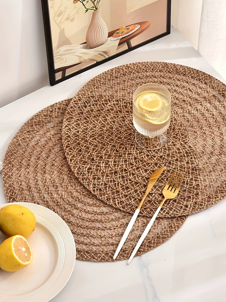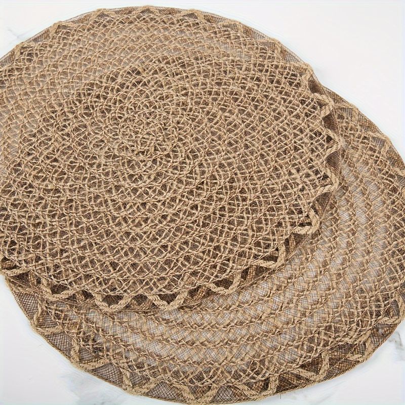 4pcs Jute Placemats Natural Material Non-Slip Heat Resistant Round Placemat Woven Mats for Parties Wedding Kitchen Table Decor