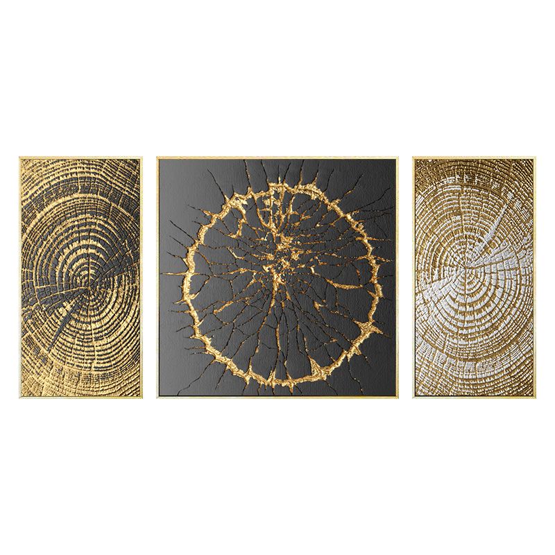 Set Of Luxury Abstract Golden Canvas Wall Art 2 Style 30x30cm