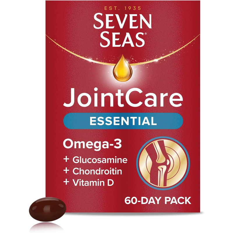 Seven Seas JointCare Essential has been specifically formulated with Omega-3, Glucosamine, and Chondroitin, plus Vitamins C and D, Zinc and Manganese to provide 4-in-1 JointCare Support¹⁻⁴, supporting 4 important components of your joints: Bones¹, Muscles², Cartilage³, and Connective Tissue⁴; like all the products in our JointCare range, Seven Seas JointCare Essential is formulated to help support an active lifestyle¹⁻⁴. Our mission is to deliver the best products, sourced from the ocean, and manufactured to the highest standards, with our ‘Ocean Gold’ promise to you including over 85 years of Omega-3 scientific expertise, commitment to putting ‘you’ at the centre of everything we do, and no compromises as Seven Seas uses high quality ingredients. How to use: Dosage: Take 1 capsule a day with a glass of cold water; ¹Vitamin D and Zinc each contribute to the maintenance of normal bones, ²Vitamin D contributes to the maintenance of normal muscle function, ³Vitamin C contributes to normal collagen formation for the normal function of cartilage, ⁴Manganese contributes to the normal formation of connective tissue, ⁵Seven Seas Omega-3 fish oils are in Triglyceride form, a more absorbable Omega-3 form vs Ethyl esters, ⁶A daily intake of 250mg EPA and DHA helps support normal heart function, and ⁷250mg DHA daily helps support normal vision and brain function; Box – Recycle, Blister – Don't Recycle