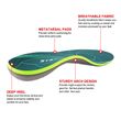 Made of high-quality and durable EVA foam substrate, it can absorb vibration and reduce foot pressure, reduce foot pain, and strengthened arch support can increase support and distribute pressure, thereby minimizing The pressure on your feet. The top layer uses non-slip moisture wicking technology to help reduce heat and friction during strenuous exercise, keeping your feet cool and dry.