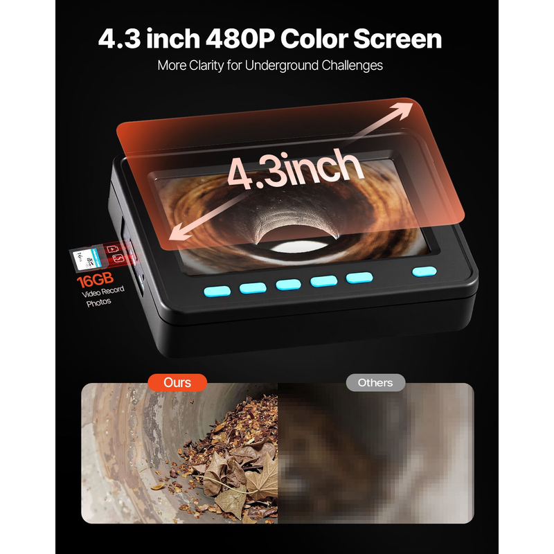4.3" Color TFT LCD Screen: The pipeline inspection camera comes with a DVR function and an 16 GB micro SD card (included in the package), allowing you to record and save images for future reference and analysis.