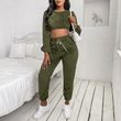 Sexy Fashion Casual Sports Plush Long-sleeved Shirt Lace-up Trousers Suit Green XL