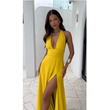 Sexy Halterneck V-neck Slit Dress Summer Backless Strappy Skirt Fashion Temperament Clothing Women Yellow L