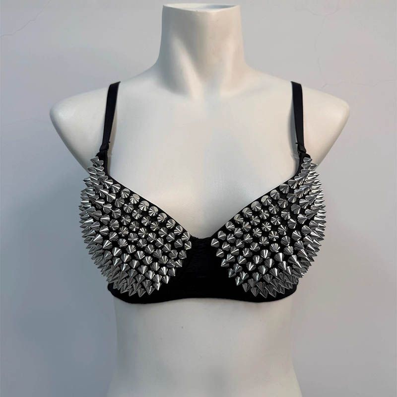 Silver Rivets Punk Rave Bralette Lingerie Gothic Bra Top Sexy Push Up Brassiere Nightclub Party Bar Fashion Hot Bras For Women