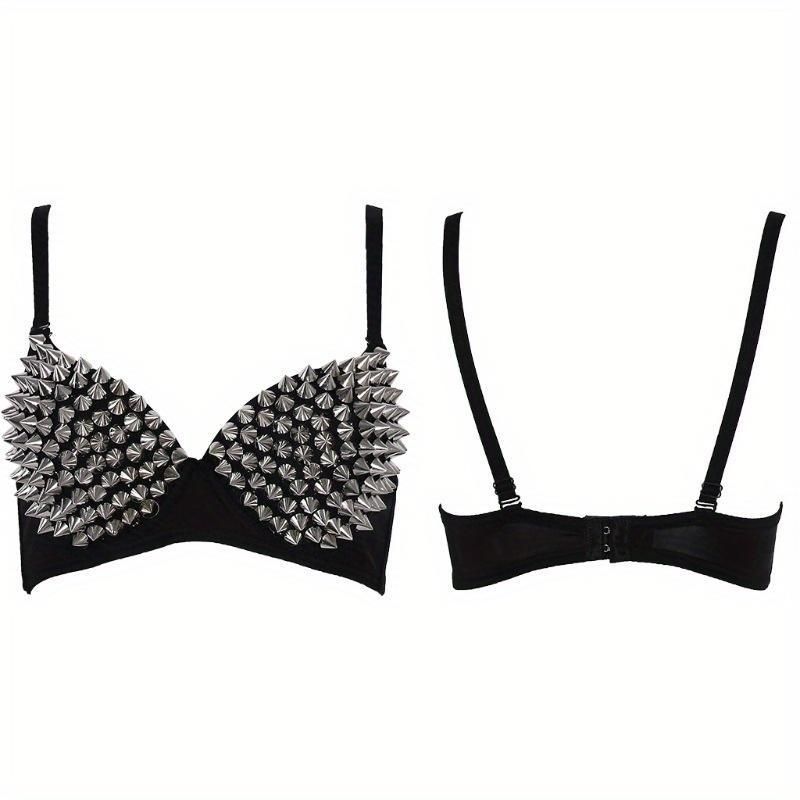 Sexy Lingerie Underwear Bras for Women,Steampunk Spike Studs Bra Top Wireless Bra, Fashion Hot Bras for Nightclub Party Bar