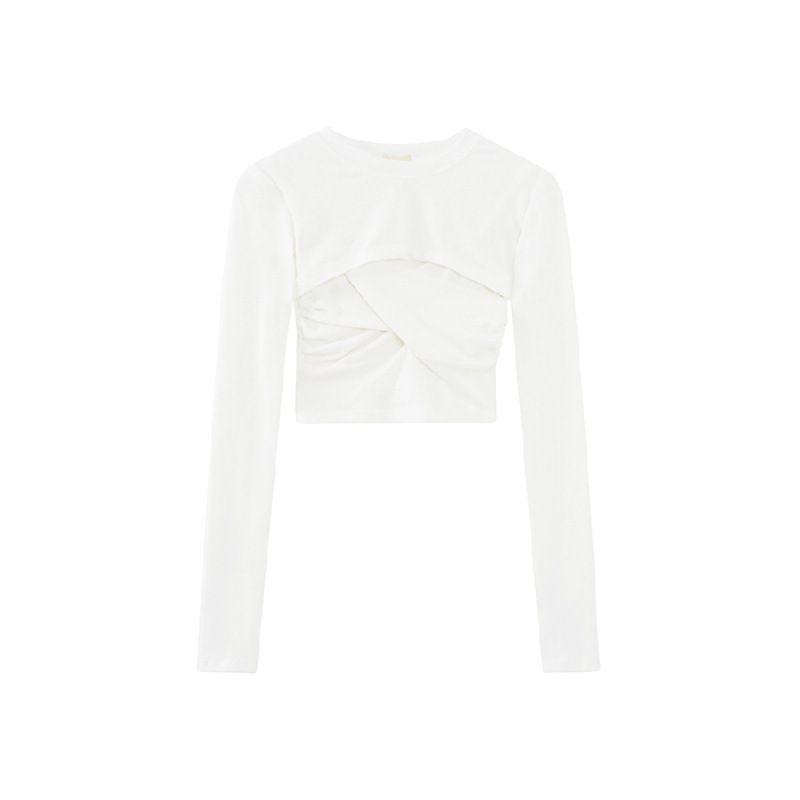 Sexy Pure Desire Style Sling Design Sense Sneaky Design Hot Girl Long Sleeve T-shirt White Average Size